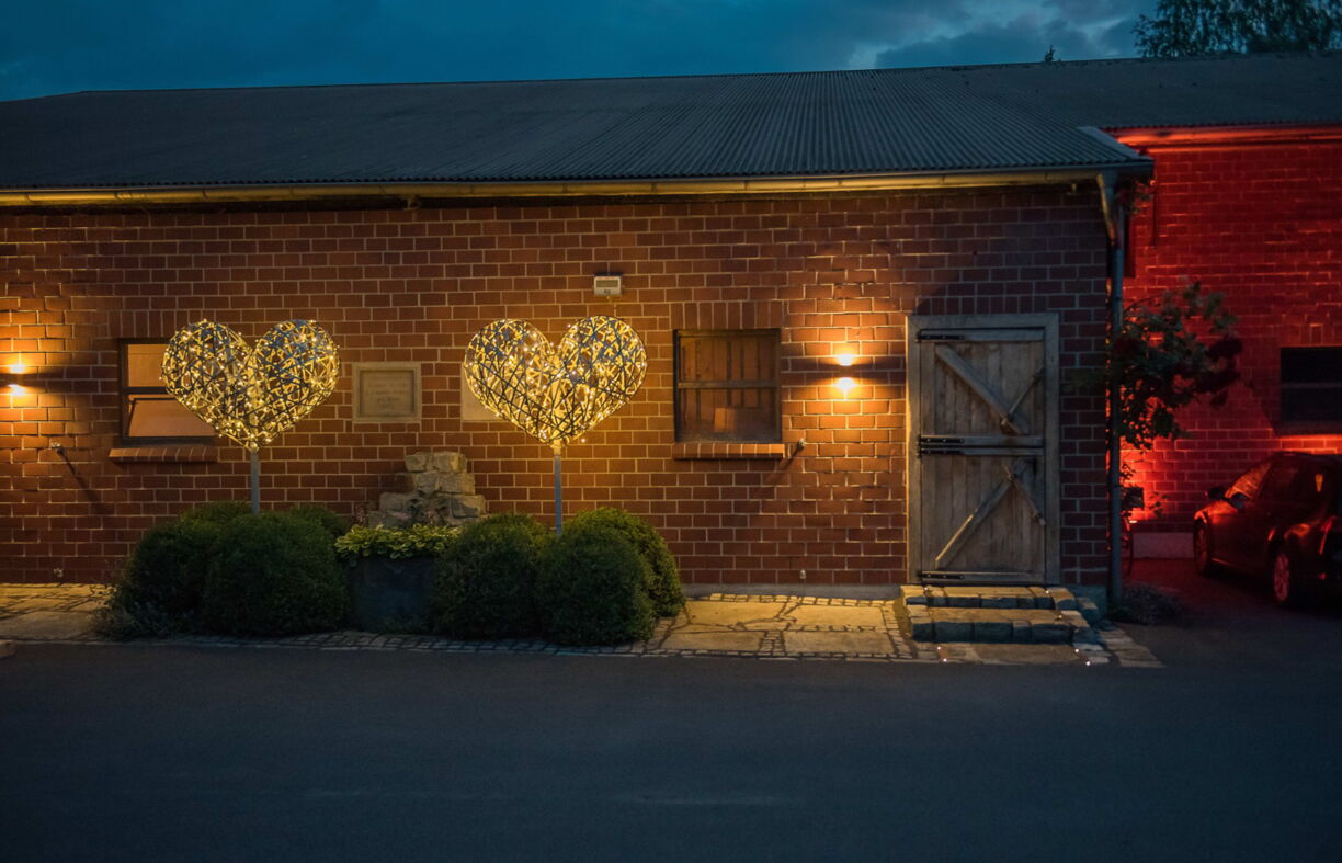 Ein wenig stolz dürfen wir an dieser Stelle schon sein, denn wir haben wirklich alles selbst gemacht – von der Beleuchtung über die Grills bis hin zu den Gebäuden. Unsere Gäste bestätigen uns immer wieder: Hier steckt die Liebe nicht nur im Detail, sondern in jedem einzelnen Quadratmeter. Unsere optimal ausgebaute Infrastruktur ermöglicht uns einen ganzjährigen Betrieb. Im Sommer feiern die meisten gerne unter dem freien Himmel unserer weitläufigen Anlage mit beispielsweise Biergarten, Teich, Trauungspodest oder an den Grillplätzen bzw. Feuerstellen. Die Kinder freuen sich darüber hinaus über Ritter- und Strohburg, Indianerspielplätze, Seilbahn, Kettcar-Strecke etc.